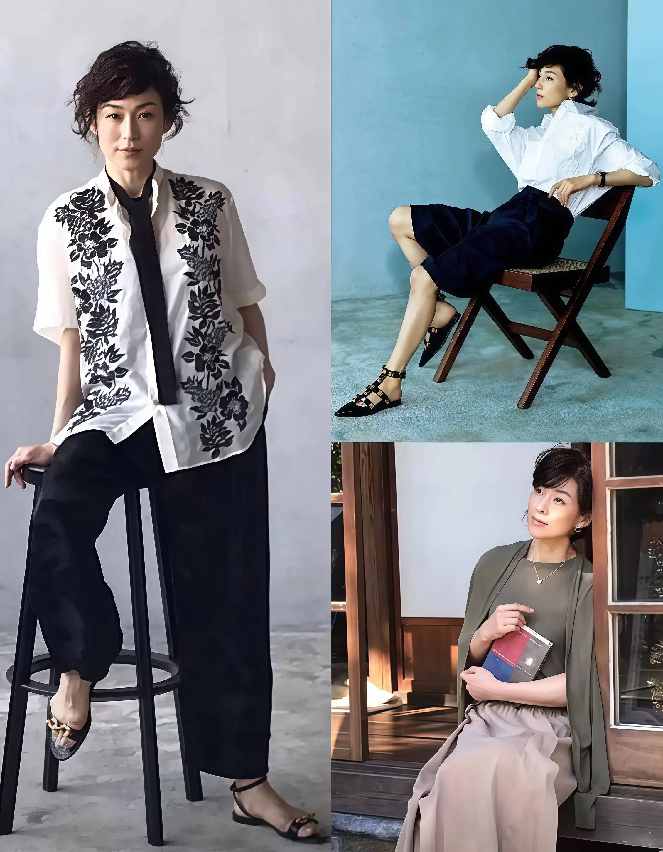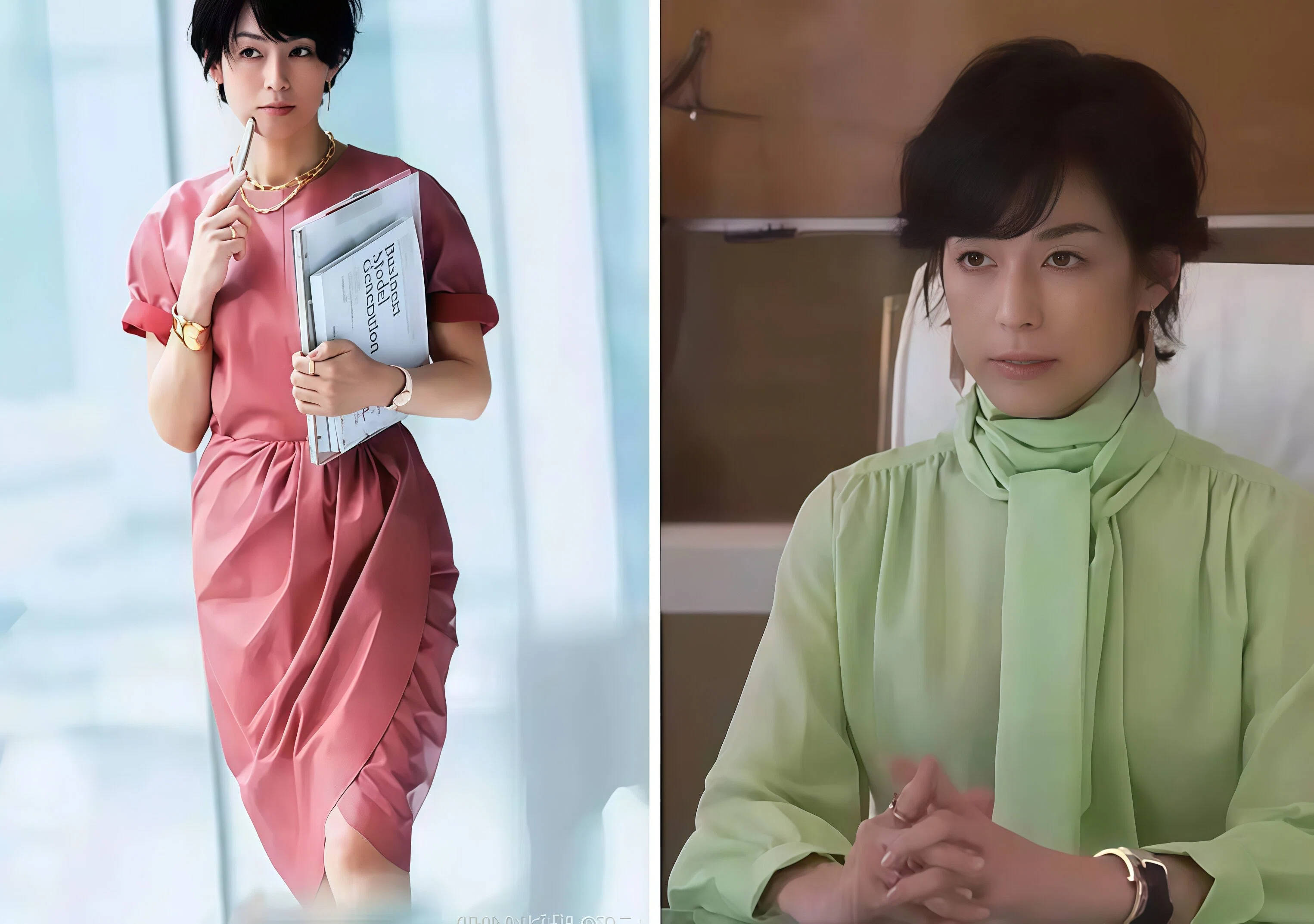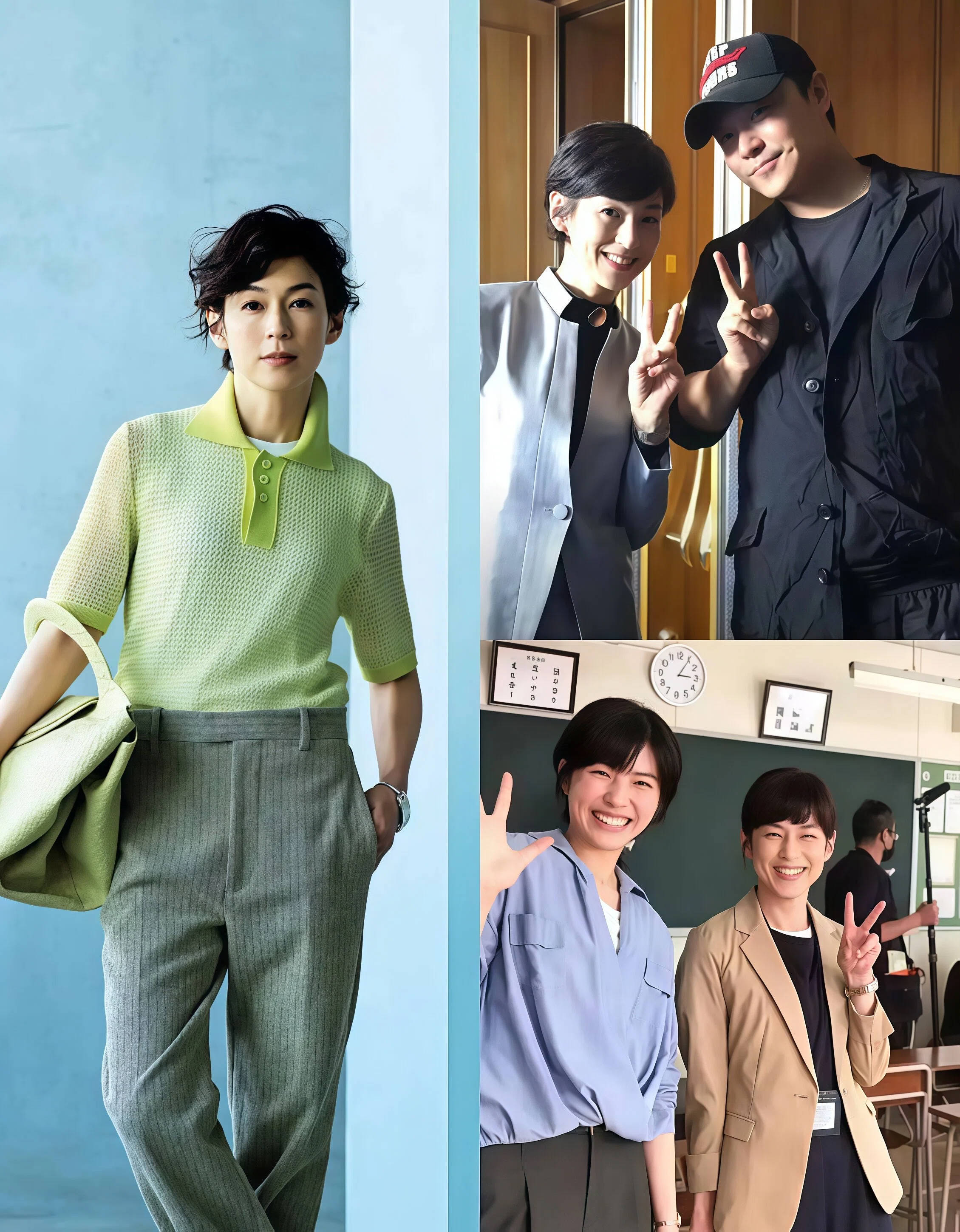 衣服是死的,人是活的,同样一件衣服穿在不同的人身上,效果天差地别。你去看铃木保奈美的剧照,她站在那里背永远是直的,肩膀是打开的,脖子是往上拎的。你不需要去学什么专业的形体课,只要平时站着的时候,有意识地把肩膀往下沉、往后收,把下巴微微往回收,整个look的气质就会完全不一样。